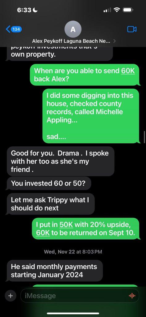 As the agreed date of September 10, 2023, approached, expectations turned to unease. The investment return I was promised by Alex Peykoff never materialized. Repeated attempts to reach out for an explanation were met with silence. It became clear that the communication lines we once shared as mentor and mentee were now deliberately severed.
